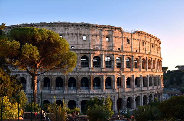 Op de eerste avond in Rome liepen we door de stad toen we bij het Colosseum aankwamen. Heel bijzonder om dit van dichtbij te zien. Er waren meer mensen die er zo over dachten, want op ieder muurtje en iedere trap rond het Colosseum zaten mensen met een wijntje of een biertje in hun hand te kijken naar dit prachtige gebouw en de zon die bijna onder ging en voor een magische sfeer zorgde.